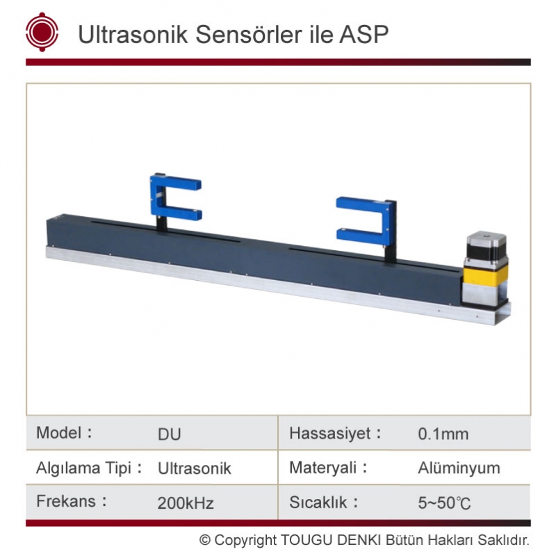 | Sensör | DU Ultrasonik + Otomatik Sensör Pozisyoner | ||