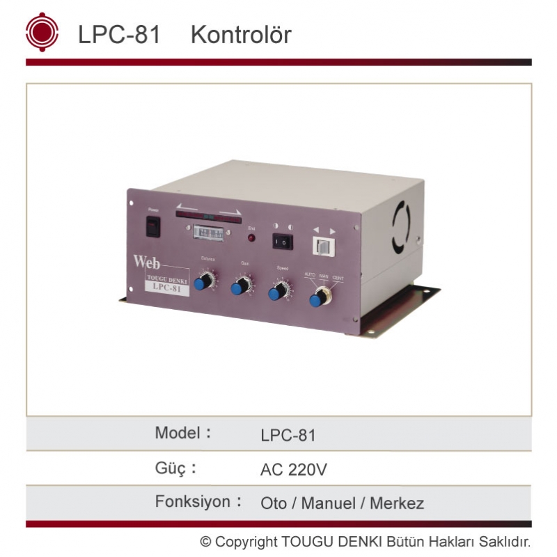 | Copyright © 2025 TOUGU DENKI Industry Corp. | Designed by oar Bütün Hakları Saklıdır. Tayvan profesyonel kenar kontrol sistemleri (EPC. LPC. CPC) üreticisidir. No.250, Renhuagong 3rd Rd., Dali Dist., Taichung City, Taiwan. TEL : +886-4-24912111 FAX : +886-4-24912739 E-mail : info@tougu.com.tw |